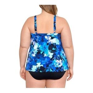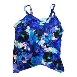 Swim Solutions Floral Print High-Neck Tankini - Blue NWT