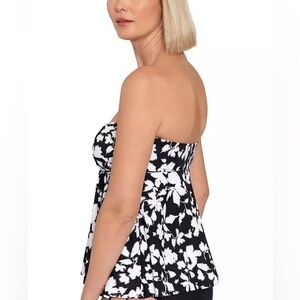 Swim Solutions | Floral Printed Flyaway Tankini Top in Black White Size 10