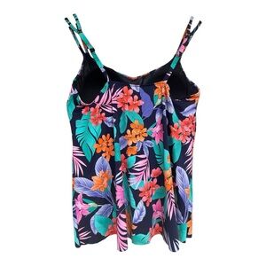 Swim Solutions Floral Spaghetti Strap Tankini swim top Sz 16W nwot, 012