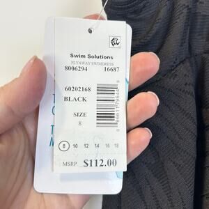 Swim Solutions Flyaway Swim Dress Black Bar III Open Front 8006294 Women's 8 NWT