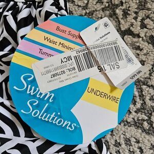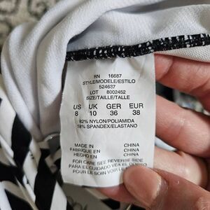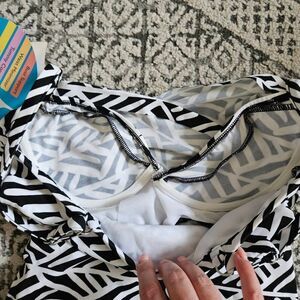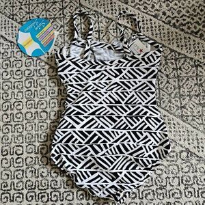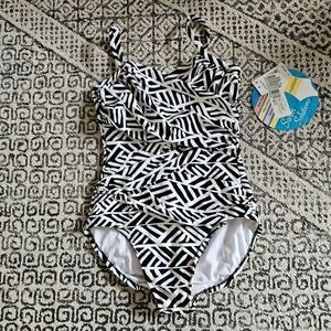 Swim Solutions Geo Print Crossover-Front One-Piece Swimsuit Size 8 in Black and White