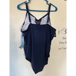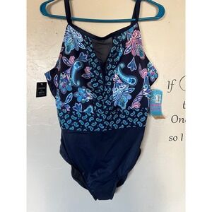 Swim Solutions High Neck Insert Mio One Piece Navy Paisley Swimsuit 18 NEW