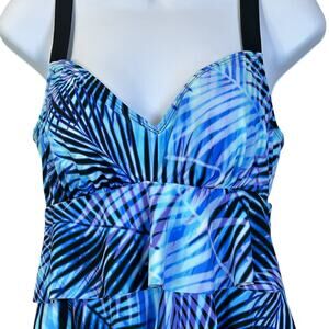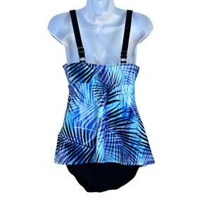 Swim Solutions Leaf It Alone Tiered Fauxkini One-Piece Blue Multi Women 8