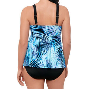 Swim Solutions Leaf It Alone Tiered Fauxkini One-Piece Navy Multi Size 10 16122