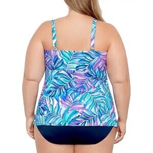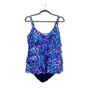 Swim Solutions Leaf Pattern One Piece Swimsuit Multicolor Women Plus Sz 24W NWT