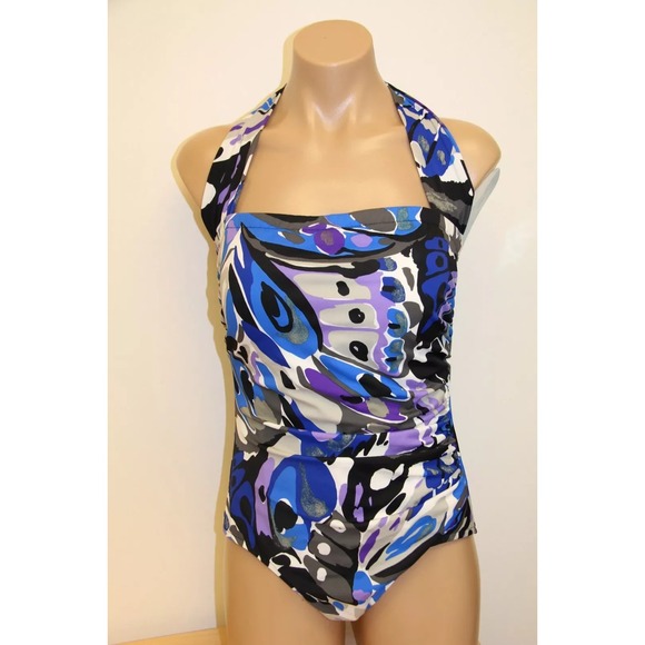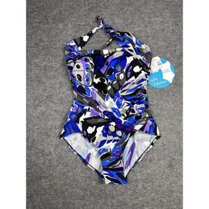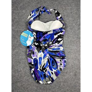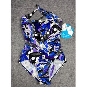 Swim Solutions Multicolor One Piece Swimsuit 14 Tummy Control NWT