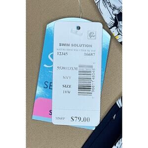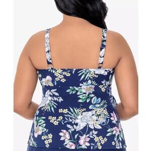 Swim Solutions Natures Charm Navy Triple Tier Tankini Top 18W NWT