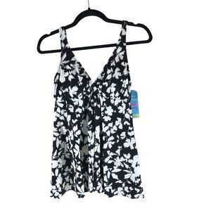 Swim Solutions One Piece Swimsuit Swimdress Tummy Control Floral Black White 20W