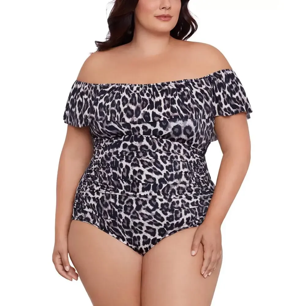 Swim Solutions Plus Size Cheetah-Print Off-Shoulder One-Piece Swimsuit –Size 20W