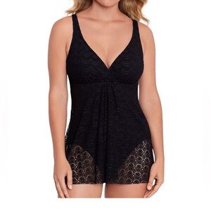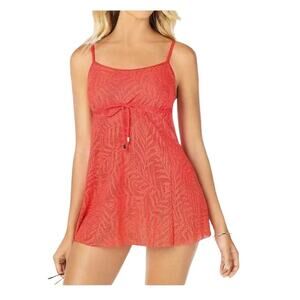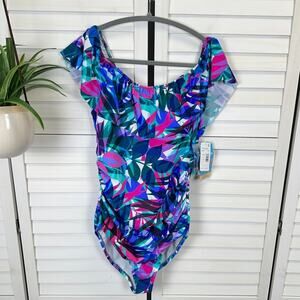 Swim Solutions Plus Size Floral-Print Pleated Tankini Top Black 24W NWT