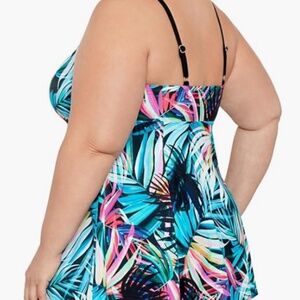 Swim Solutions Plus Size Tummy Control Empire Swimdress Multi Size 22W 8813