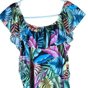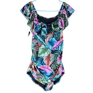 Swim Solutions Ruffled Off The Shoulder Tummy Control One Piece Swimsuit Multi Colored Size 20W NEW