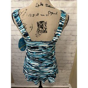 Swim solutions size 12 lakeside teal green tankini swimsuit top tummy control. Modest. Lined,Soft cup. Non adjustable strap. New.