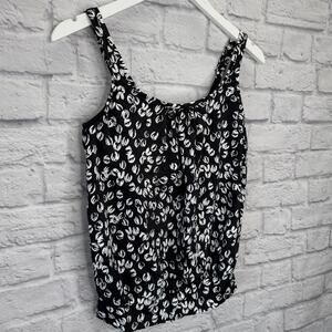 Swim Solutions Shirred Neck Blouson Tankini Top Size 10 Black White Dot Bra New