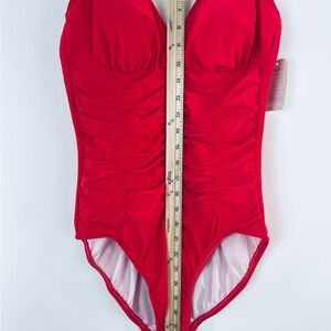 Swim Solutions Shirred Wide Strap One Piece Swimsuit Size 8 Coral Orange