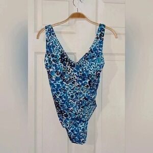 Swim Solutions Side Shirred Hip Tummy Minamizer Swimsuit Sz. 8 Blue NWT $118