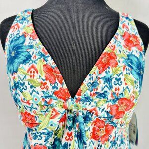 Swim Solutions Simply Sweet Tie Front Tummy-Control Tankini Top Size 10 NWT $72