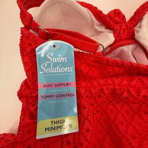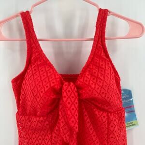 Swim Solutions Swim Dress Size 12 Bow Front Tummy Control Swimsuit Coral Orange NWT