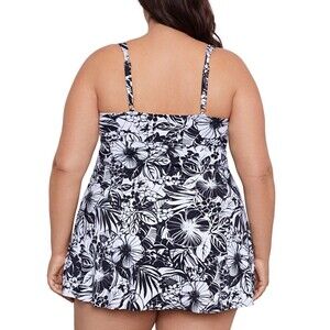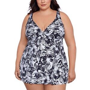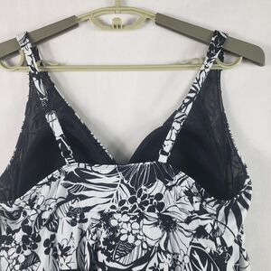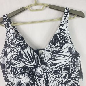 Swim Solutions Swimdress Womens 18W Black White Floral One Piece Tummy Control
