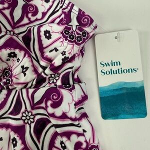 Swim Solutions Tankini Bikini Top Womens Size US 10 Purple Floral Underwire NWT
