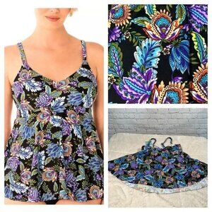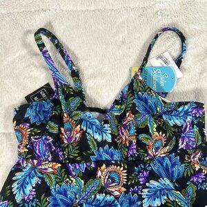 Swim Solutions Tankini Top Swimsuit Boho Floral Paisley V Neck Floral NEW Size 8