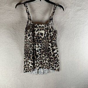 Swim Solutions Tankini Top Women 16 Tan Beige Leopard Pleat-Front Swimwear Beach