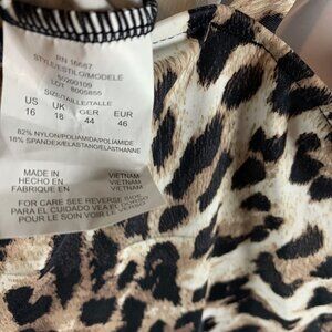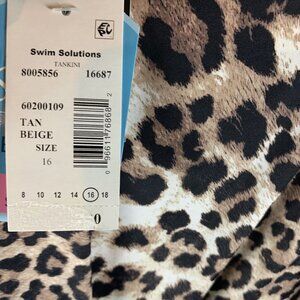 Swim Solutions Tankini Top Women 16 Tan Beige Leopard Pleat-Front Swimwear Beach.