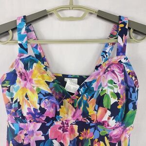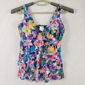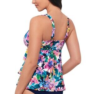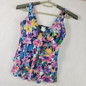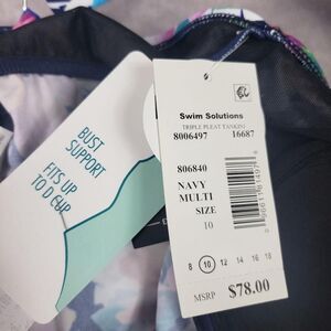 Swim Solutions Tankini Top Womens 10 Navy Multi Triple Pleat Floral D Cup 806840