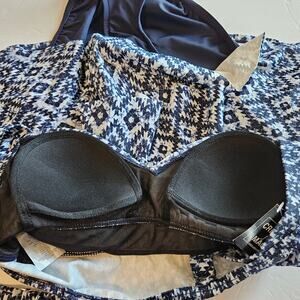A trio of printed tiers form the relaxed and flattering layered fauxkini from Swim Solutions.