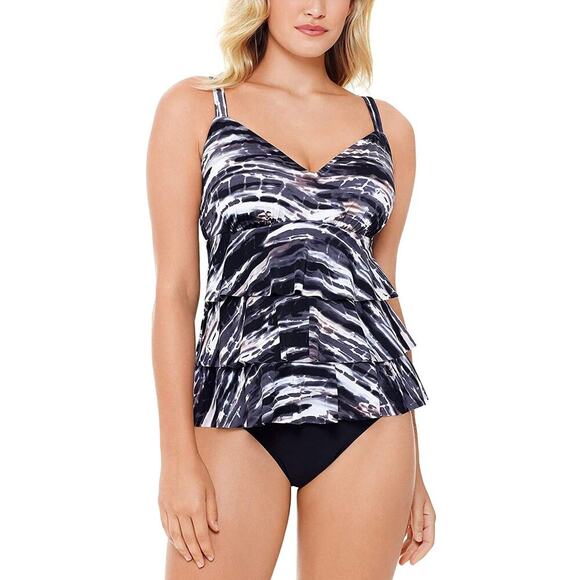Swim Solutions Women's Triple Tiered Tummy-Control One-Piece, Multi, 12 NEW