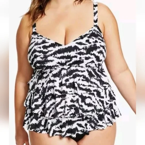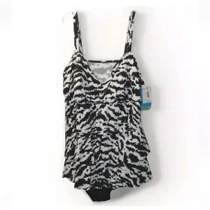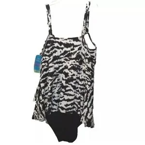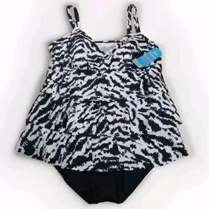 Swim Solutions Tummy Control V-neck One Pc Swimsuit Woman Plus 22W Black Tiered