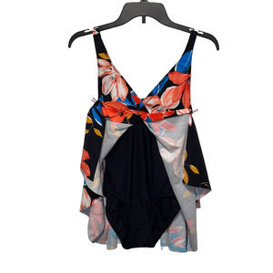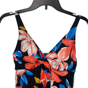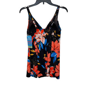 Tropical pop in a flowy and flattering shape, this Swim Solutions tummy-control swimdress is a bright spot on the beach or at the pool.