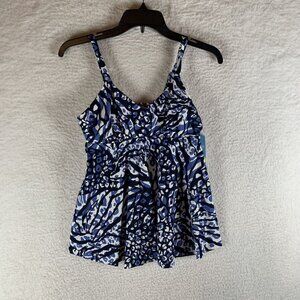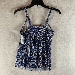 Swim Solutions Underwire Tankini Swim Top Women's 8 Navy Multciolor Animal Print