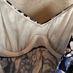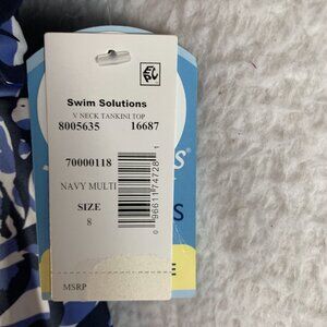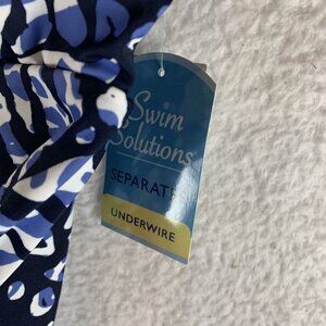 Swim Solutions Underwire Tankini Swim Top Women's 8 Navy Multciolor Animal Print.