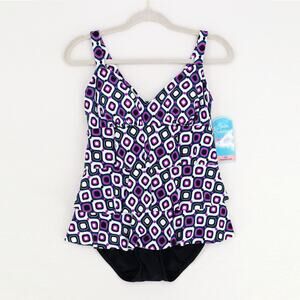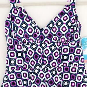 Swim Solutions Women Purple Tiered Tummy Control One-Piece Swimsuit Size US 8