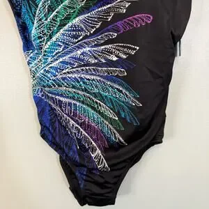 Swim Solutions Women's Black Firework Pull On One-Piece Swimsuit Size 14 NWT
