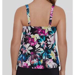 The Swim Solutions Women's Black Printed Triple Tier Tankini Swimwear in size 8