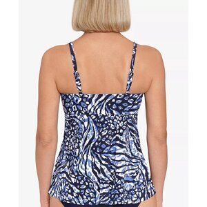 Swim Solutions Womens Blue Animal Print Underwire V Neck Swim Tankini Top 10