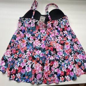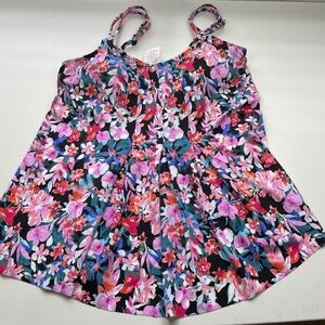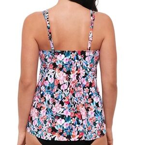 Swim Solutions Womens Blushing Flowers Pleated Front Tankini Top Swim Top 10
