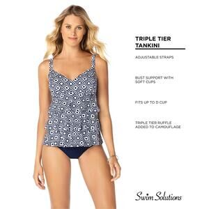 Swim Solutions Womens Double Play Metallic Print Tiered Tankini Top Size 8