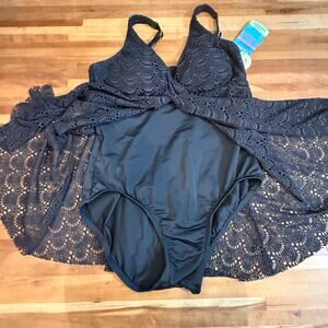 Swim Solutions Women's Flyaway One-Piece Swimdress black 10 MSRP $112