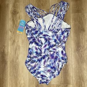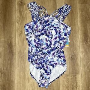 Swim Solutions Women's Nautical Fronds Strappy Underwire 1 Piece Swimsuit sz 12