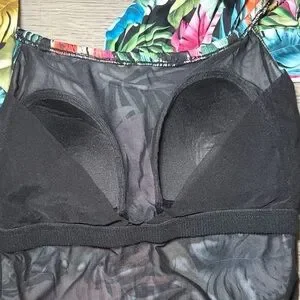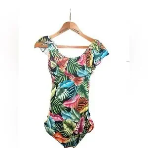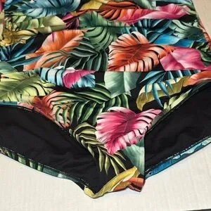 Bright and fun tropical swimwear perfect for beach or pool days. Features a vibrant multicolor floral pattern.
