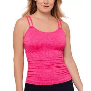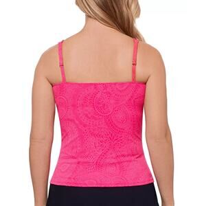 Swim Solutions Women's Paisley-Print Tunnel Tankini Top Pink Size 18 0640