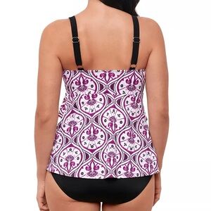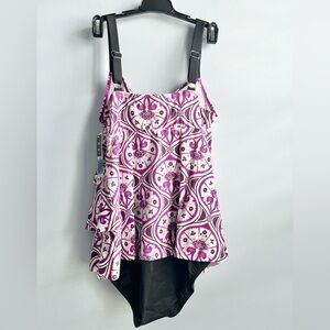 Swim Solutions Women's Purple Printed Tiered Fauxkini One-Piece Swimsuit Size 10