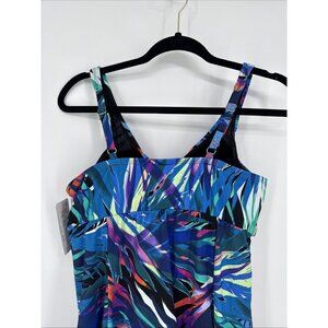 Swim Solutions Women's Size 18 Tropical Print Tummy Control Bow Front Swimdress