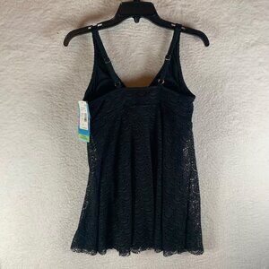 Swim Solutions Women's Tummy Control Flyaway Black V-Neck Swimdress Size 12 NWT