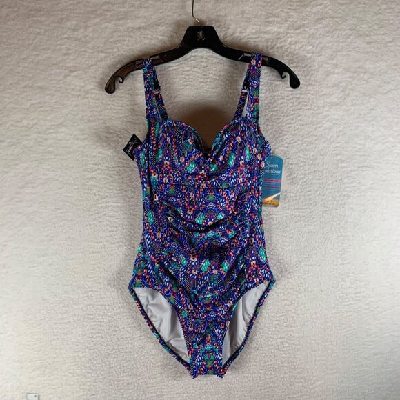 Swim Solutions Womens Tummy Control Shirred One Piece Swimsuit Size 12 NWT 9402