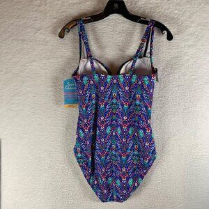 Swim Solutions Women's Tummy Control Shirred One Piece Swimsuit Size 12 NWT 9402