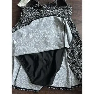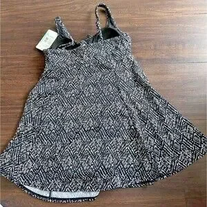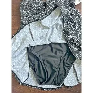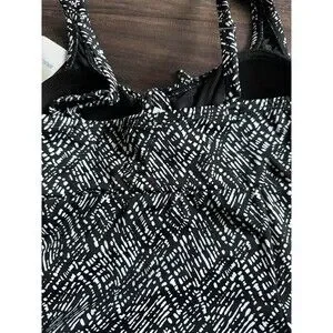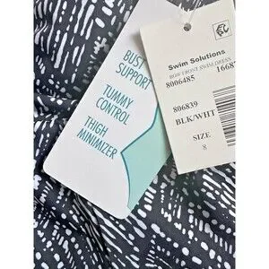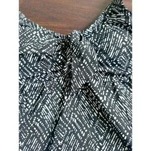 Swim Solutions Women's V-neck Abstract Bow Front Swim dress Black & White 8